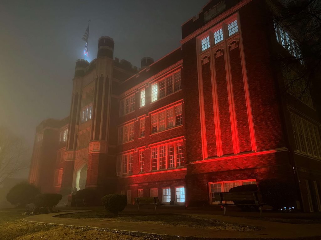 Our historic building was built in 1914 after the fire in Hot Springs in 1913. Since then, it has seen many transitions. It has been a high school (Fun fact: President Bill Clinton graduated from this high school in 1964), a middle school, a cultural center, and currently, a 32-unit remodeled apartment complex with multiple short-term as well as long-term rentals. We are a family and pet friendly building with secure FOB entry and 24/7 camera surveillance inside the halls as well as around the perimeter. We also have a handicap accessible ramp along the side of our building that leads to our elevators. We also have a laundry facility on the premises. At night, our LED lights light up the building in different colors, bringing our building to life.